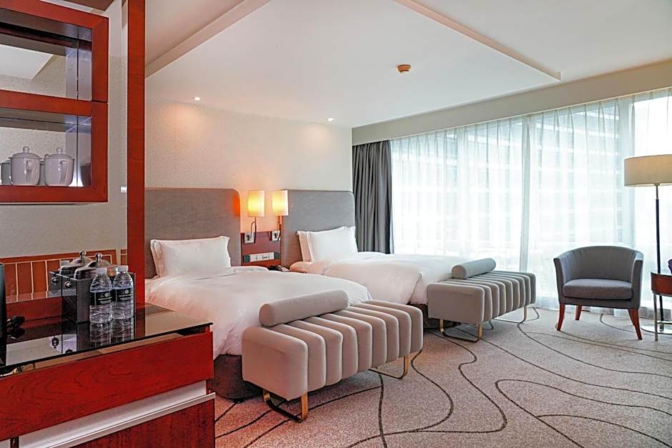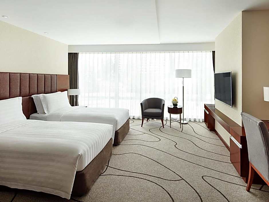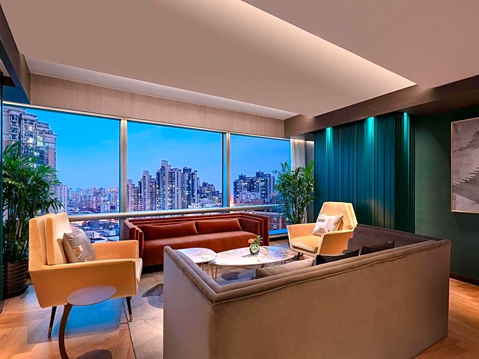 Located on 11-19th floor, this 48-square-yard room features large windows with views of the city and a separate seating area.